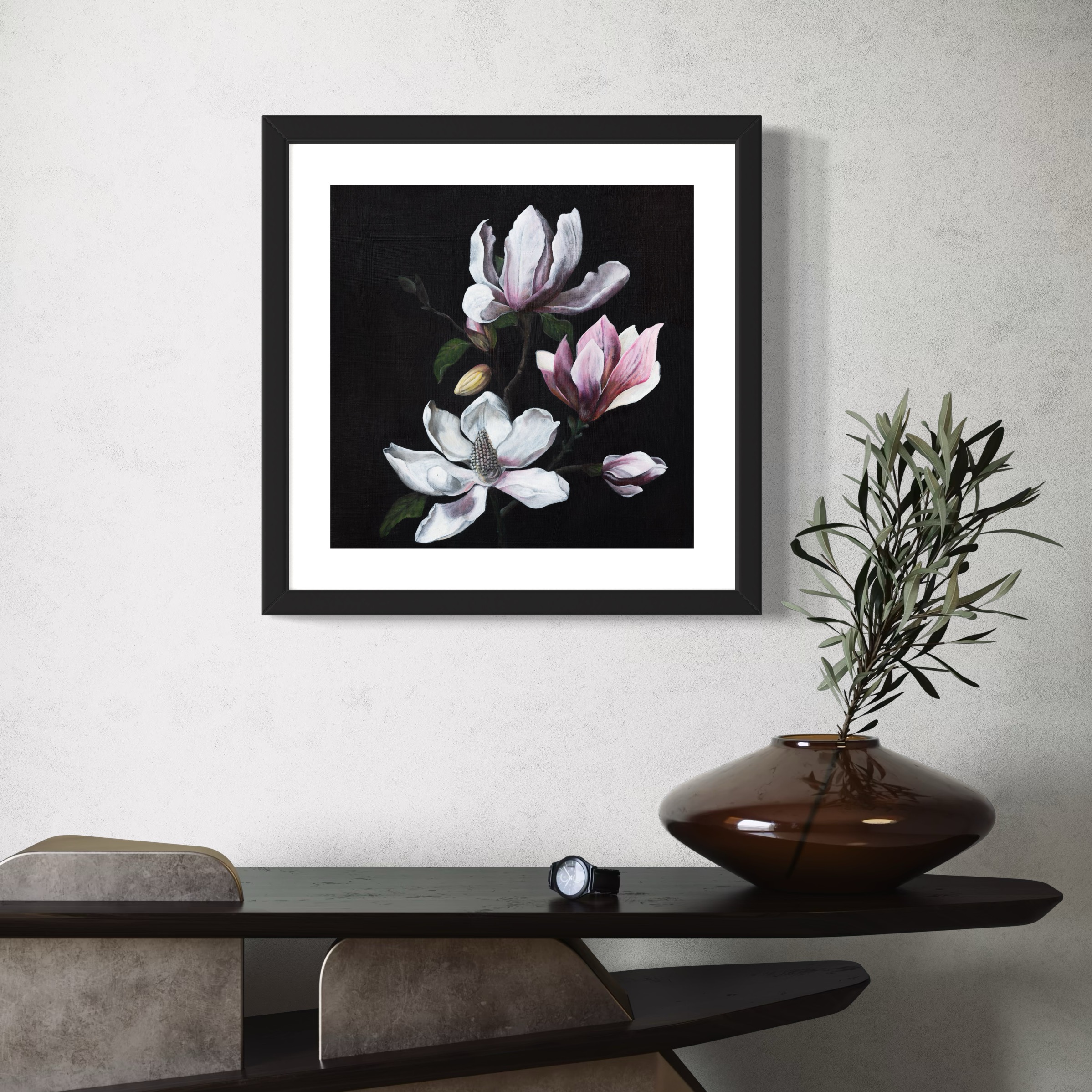Discover our exclusive collection of prints and accessories inspired by the breathtaking floral art of “Ancient Magnolia.” This captivating painting reveals the delicate texture of its blossoms, with soft hues that gracefully dance against a deep backdrop. Magnolias, renowned for their resilience and elegance, have adorned gardens and landscapes for centuries, symbolizing beauty and dignity. This artwork not only adds sophistication to any decor but also serves as a timeless tribute to nature’s artistry, making it an ideal choice for botanical lovers and art enthusiasts alike.