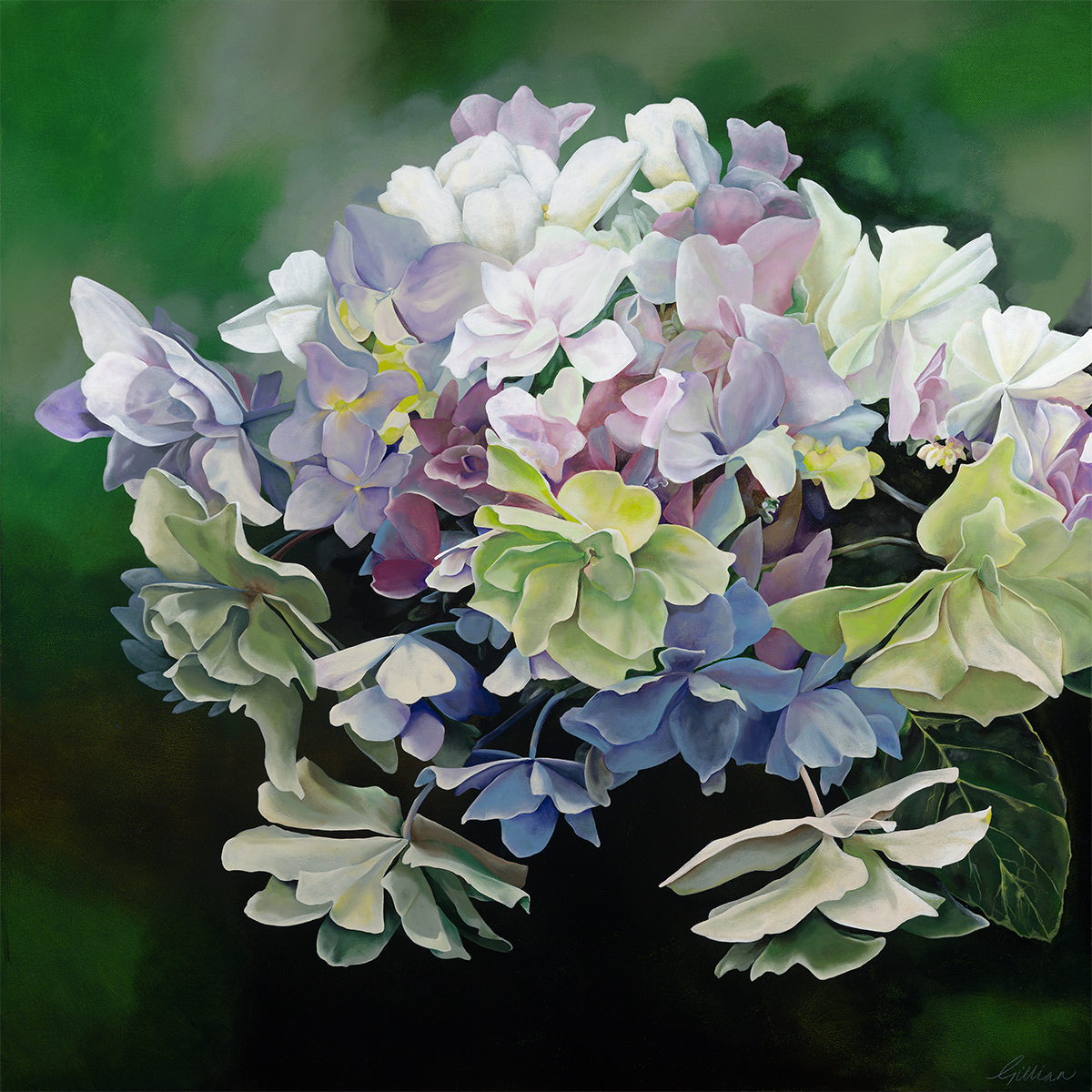 Discover the enchanting beauty of “FELICITY’S GRACE,” a breathtaking painting that captures the soft elegance of the Felicity hydrangea in full bloom. This artwork showcases a lush cluster of delicate petals in gentle hues, inviting you to appreciate the intricate details and textures that define this exquisite flower.