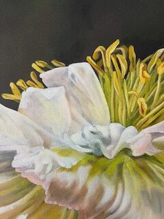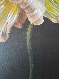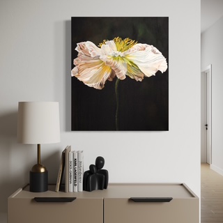 Inspired by one of Hollywood’s most unforgettable images — Marilyn Monroe standing over a subway grate as her white dress lifts in the breeze — Marilyn’s Fame captures that fleeting blend of allure and vulnerability. This softly ruffled poppy, with its windswept petals and pale blush tones, echoes the spontaneous lift of fabric and the quiet strength behind the pose. The bloom feels suspended in a moment of exposure and poise- a symbol of femininity caught between performance and authenticity.