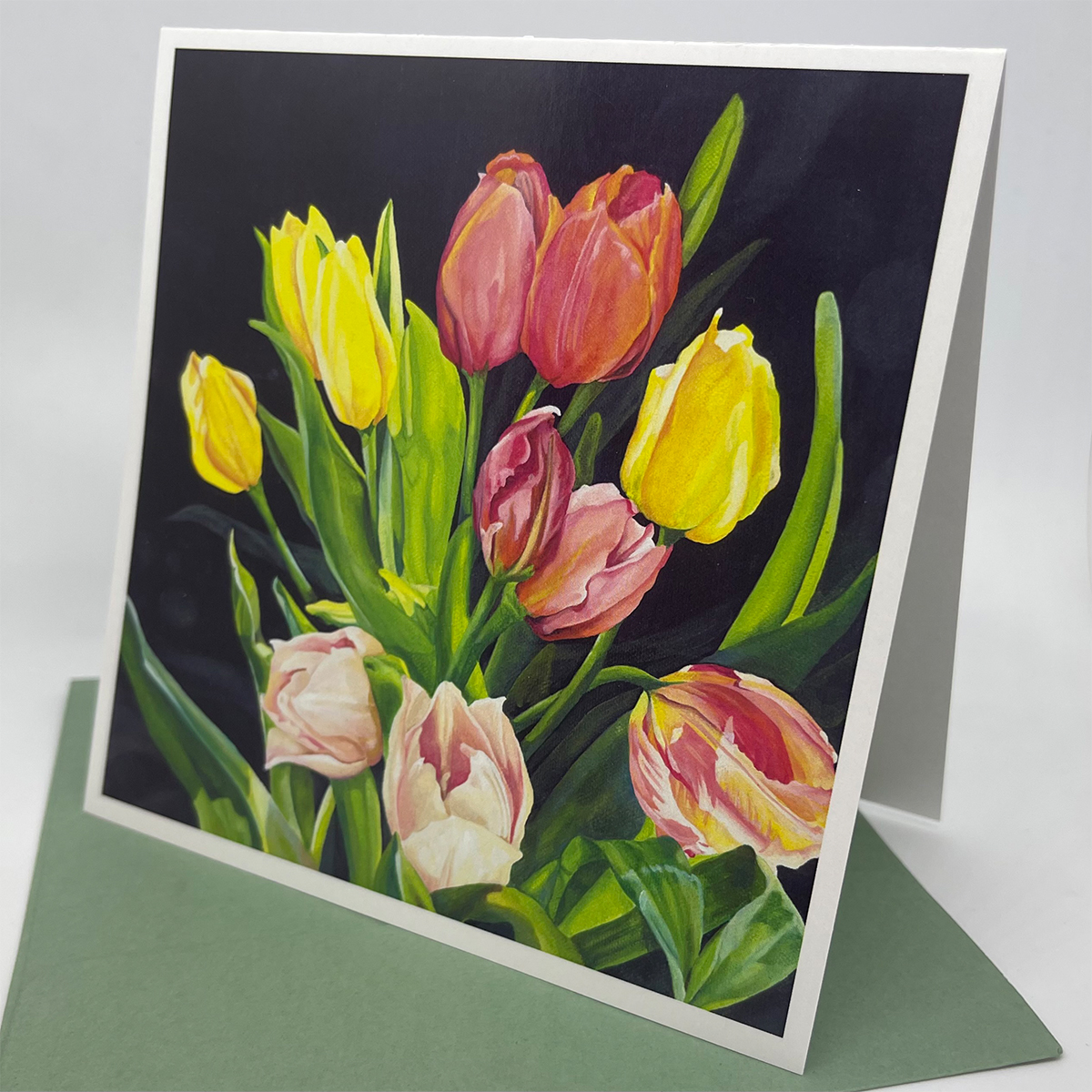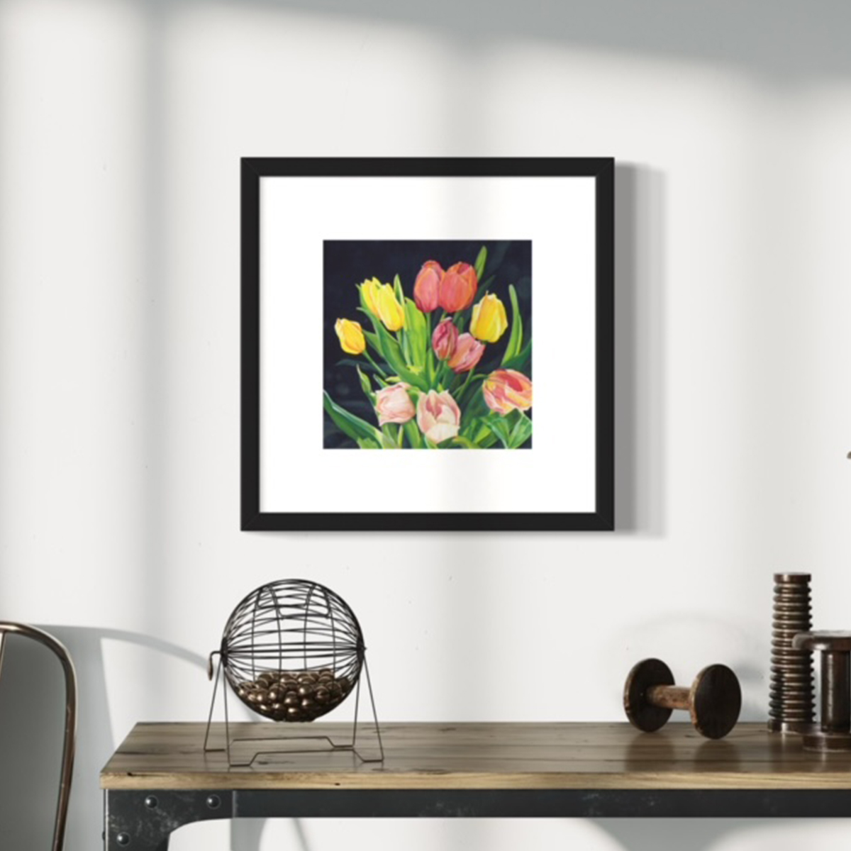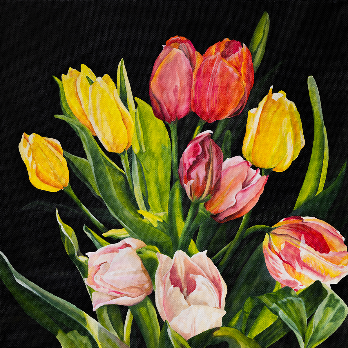 Experience the joy of spring with “SUNDAY BLOOMS,” a captivating painting that bursts with a vibrant array of mixed-color tulips. This exquisite bouquet showcases radiant hues and delicate petals, instantly brightening any space and bringing a smile to your day.